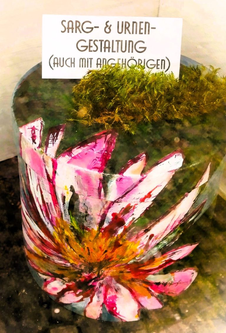 Die Urne oder den Sarg für seinen geliebten Zwei- oder Vierbeiner selbst zu gestalten, wünschen sich viele Trauernde ganz intuitiv. Im Tränenreich werdet ihr von der Idee über den gesamten Gestaltungs-prozess begleitet. Die Urne selbst könnt ihr gerne mitbringen (z.B. vom Bestattungshaus) oder mit uns gemeinsam eine passende Form aussuchen. Auf Anfrage liefern viele Bestatter auch einen Sarg zur Weitergestaltung an. Natürlich kann die Gestaltung auch zusammen mit anderen Zugehörigen umgesetzt werden - im Atelier ist Platz bis zu 10 Personen. Wer sich gar nicht zutraut, die eigenen Vorstellungen umzusetzen, kann sie uns natürlich auch gerne "in Auftrag geben".
